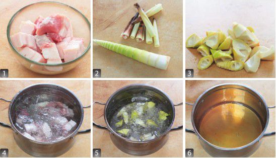 放入竹笋及盐,加入盖过五花肉的开水,大火煮开后转小火炖 1 小时。最后大火将汁收浓即可。