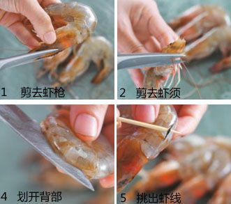虾去腥的窍门:剪去虾枪。2.剪去虾须。3.划开背部。4.挑出虾线
