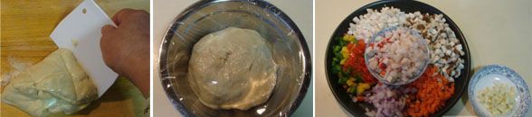 在等待发酵的时间里 你可以做些后续工作 如 切碎蔬菜 准备CHEESE等 PIZZA的好坏和CHEESE分不开乳酪丝一定要马苏里拉乳酪,否则烤出来的Pizza没有拉丝效果。