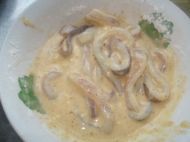 很家常的做法,非常非常的简单。 味道也很鲜美,外酥里嫩的,喜欢的话可以尝试一下! 鱿鱼,也称柔鱼、枪乌贼,营养价值很高,是名贵的海产品。它和墨鱼、章鱼等软体腕足类海产品在营养功用方面基本相同,都是富含蛋白质、钙、磷、铁等,并含有十分丰富的诸如硒、碘、锰、铜等微量元素的食物。