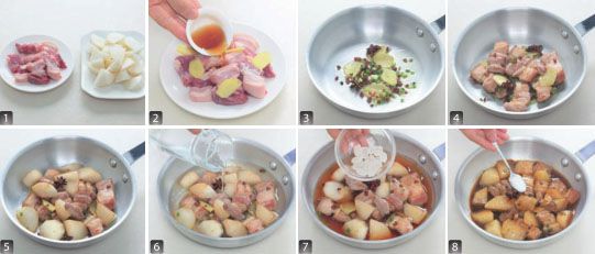 在烹饪前,也可将猪肉先焯水,滤去浮沫,这样可以减少一些油腻感。