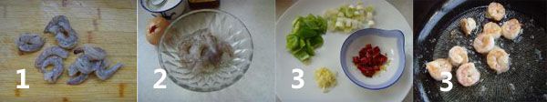 龙虾经初加工后取肉,切成约2厘米大小的丁,与食盐1克 料酒5克 蛋清10克 干淀粉10克拌匀,入80℃食用油中滑熟捞出。