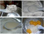 另取一容器 加入4大勺面粉 4勺白糖,12勺牛奶 以及前面分离出来的4个蛋黄 搅匀。