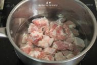 待冰糖开始融化的时候放入排骨,小火慢炒。