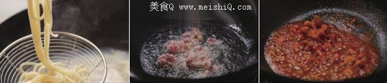 五花肉洗干净,切丁、拉面,清水煮熟,挑出装碗。