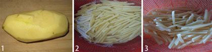 注意在给薯条沥水的时候,一定要沥干,这是为一会儿的炸制作准备,否则的话你炸的时候厨房里会“热闹”得失去控制……