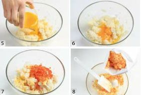 将黄油热熔后,取 3/4 的量放入土豆泥中,加入盐、黑胡椒碎,然后加入蛋黄、胡萝卜碎搅拌均匀。