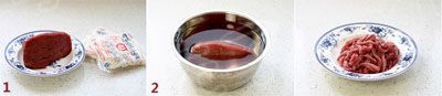 准备好主料,牛里脊肉用清水浸泡15分钟,热水洗净,切丝备用。