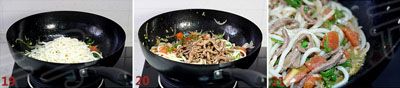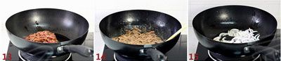 锅子洗净烧热倒油下入腌制好的牛肉丝,用筷子划散炒熟盛出备用,锅子洗净倒油烧至5成热下入洋葱丝炒出香味。