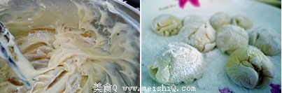1.将牛奶 糯米粉 淀粉 糖 混合成面浆(不能太稀~)