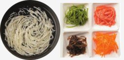 将细如毛发的豆腐丝放入清水中润开,去除豆腥味。