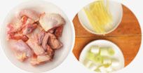鸡切块,小葱切段,姜切片。把鸡块与葱段和姜片混合,调入适量盐和料酒抓匀。