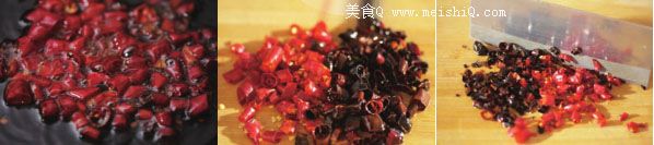 炸干是用铁锅倒入菜油或其他植物油烧热,将鱼放入,用文火炸熟到9成干,待鱼呈金黄色时捞出。烘干时先将铁锅烧热到7O~80C,锅底擦熟菜油,再把鱼两半张开平放锅上文火慢供(注意不要将鱼烘糊),待干至9成左右时取出,用蒸笼蒸熟。