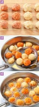 提高油温至八成热,此时不仅可以感受到明显的热气,还可以看到一些油烟,将炸好的丸子再次放入,炸至表面金黄酥脆后捞出沥油即可。