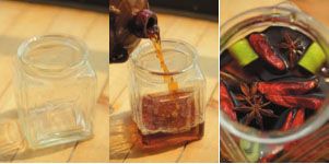准备腌料:将盐、白糖、黄酒、老抽、醋、白酒、鸡精、姜、蒜,辣椒、花椒、八角、桂皮等调料全部放入大碗,搅拌均匀。