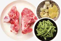 锅中水沸后放入排骨氽烫一会儿,捞出排骨,用温水冲净血沫和污物