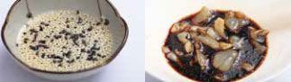 取干净无水的小碗,放入白芝麻,倒入麻油放凉;