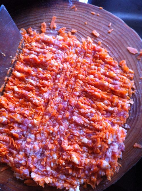 一般的蒸菜肉汁都是比较多的、所以蒸菜我喜欢用素菜或者粉丝铺底、因为铺底的粉丝可以刚好把所以的肉汁都吸收了、所以连粉丝都非常好吃呢、加入个红萝卜的肉末特别的甜、所以一点糖都不需要加、马蹄可以增加脆口的,感觉非常好吃的肉饼、推荐给大家
