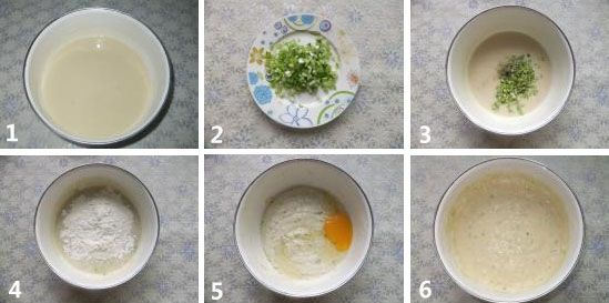 豆渣混和少许豆浆,把香葱切成葱花。将葱末倒入豆渣中,加适量盐、胡椒粉。