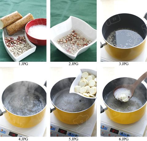 3、去山药皮前,可以把山药放在火上烤一下,这样去皮时就不会手痒了。百合很好熟,要最后放。枸杞要少放一些,容易上火。
