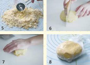 再加入蛋黄和水,简单地将所有材料拌合成粗糙的面团。