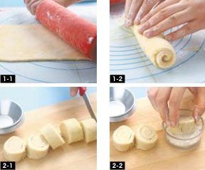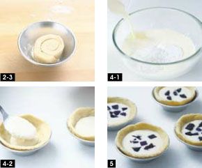 取出后稍微恢复室温,然后切2cm厚的片状,每片蘸些干面粉,放在蛋挞模里,用双手的大拇指将塔皮由中心向四周推开,直至跟模具大小相同。