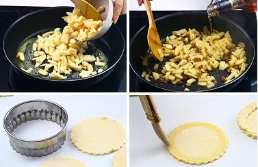 材料B中的苹果切小丁与糖混合,放入锅中加热,煮至水分基本挥发后放入柠檬汁、酒、和核桃碎以及酒浸葡萄干。搅拌均匀关火放凉后使用。