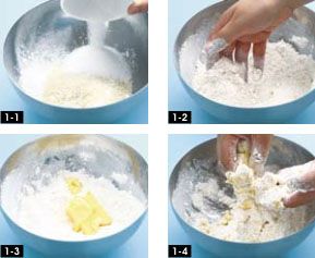 1、混合A料的时候只需要将所有材料用手上下翻匀,然后轻轻搓成不规则的粗粒状,不要过度搅拌以免出筋影响口感。