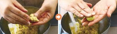 将搅拌好的面团装入保鲜袋冷藏20分钟,取出,取一小部分揉成小面团,揉圆备用。