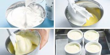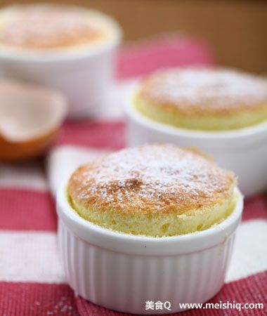 1、舒芙蕾面糊中没有面粉,蛋白的体积占了绝大多数,出炉后要马上使用,否则温度降低会使体积缩小,口感也不如热的时候绵软松发。