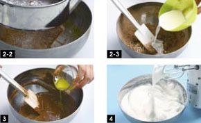 将D料中的蛋清、糖和柠檬汁混合,用电动打蛋器将其打至9分发泡。