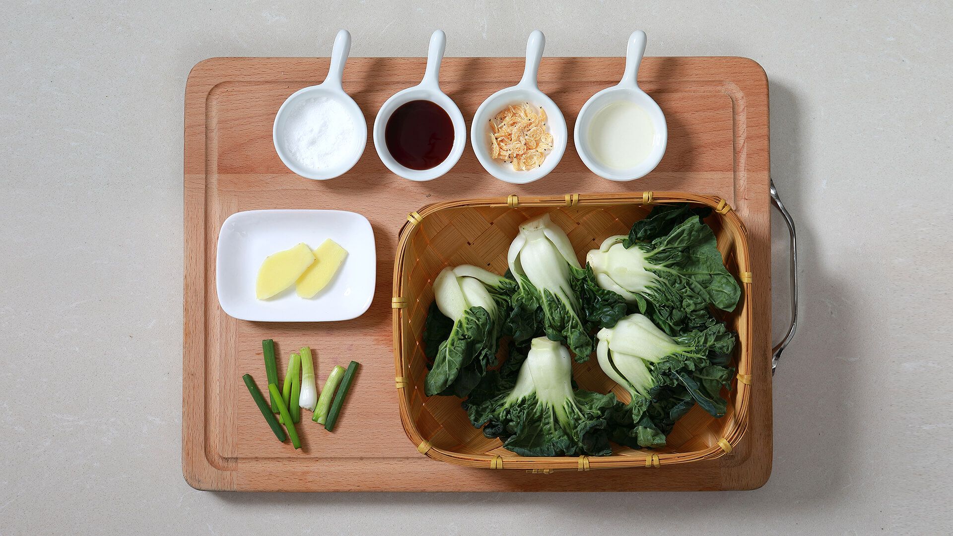 小白菜掰开洗净沥干备用。