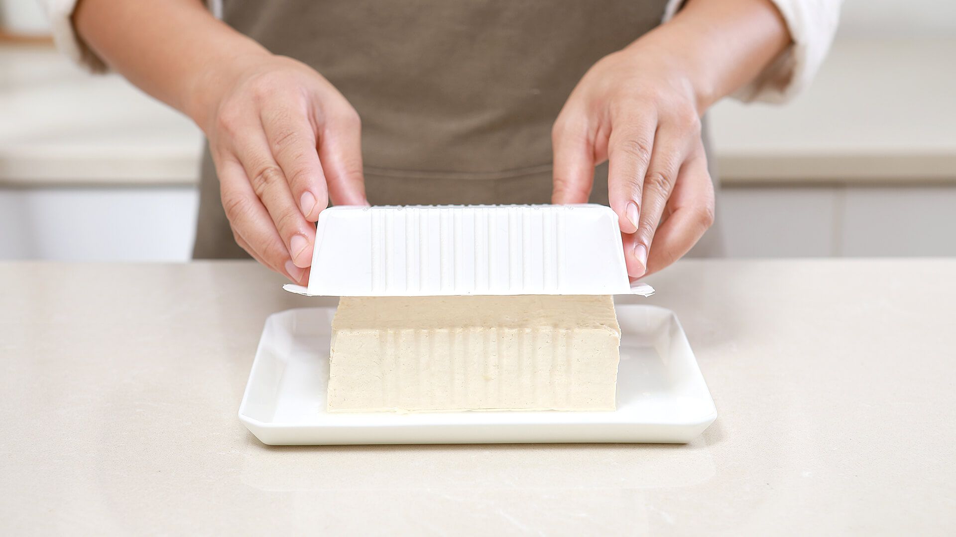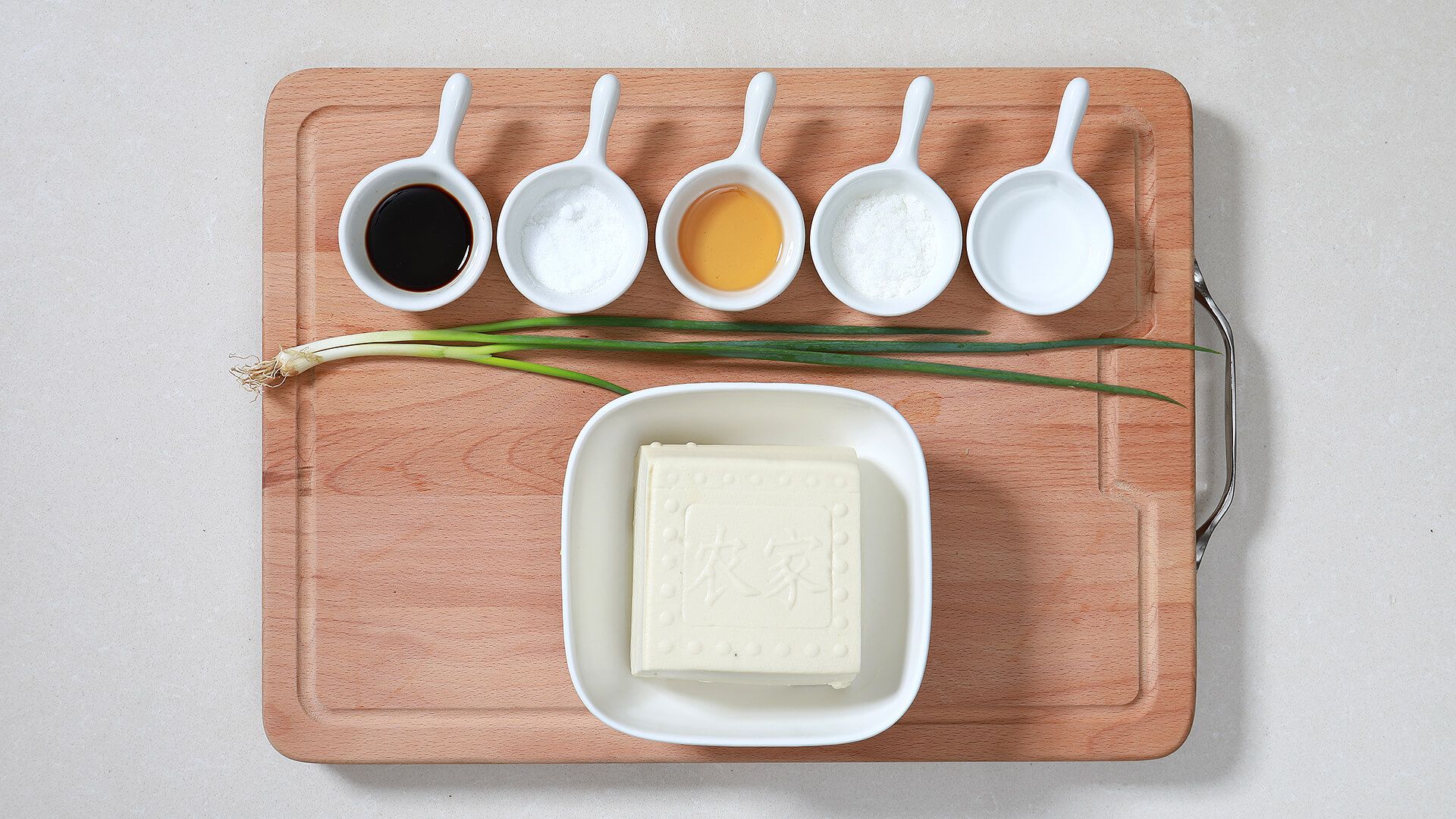 取出豆腐后用冷开水洗净哦!买豆腐的时候可以闻一下有没有生味或者其它不喜欢的味道,因为是生吃,如果不喜欢豆腐的味道后导致这道菜做失败,所以请慎重选择自己喜欢的豆腐哦!
