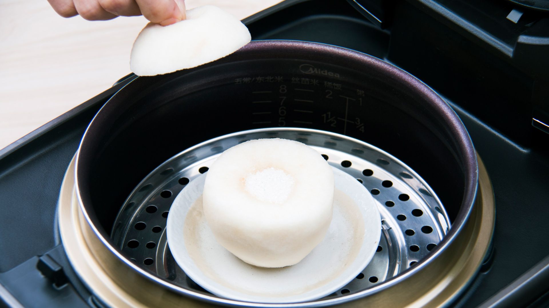 内锅放上蒸隔。