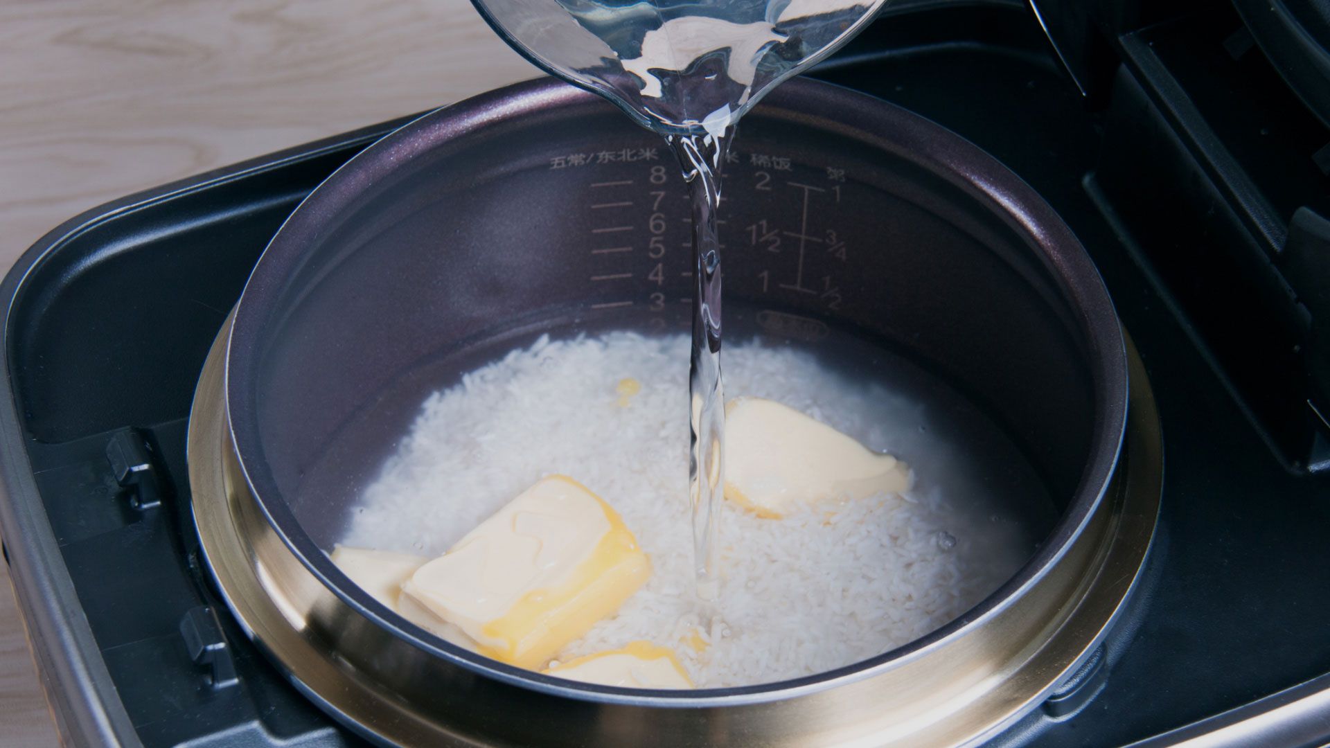 注入清水至煮饭3刻度水位,合盖开始烹饪。
