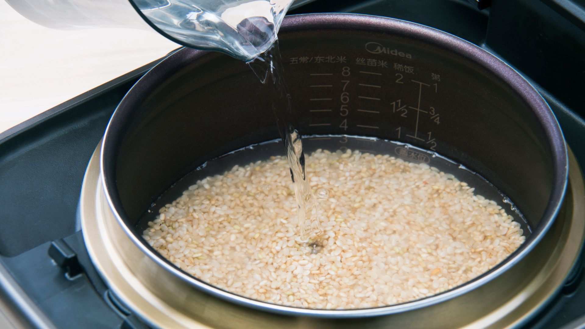 将发芽玄米洗净(注意洗米是不要用力过度,以免造成胚芽等营养成分流失)建议多洗几遍,因为发芽过程中会产生一些酸味或别的味道,洗好的大米放入内胆。