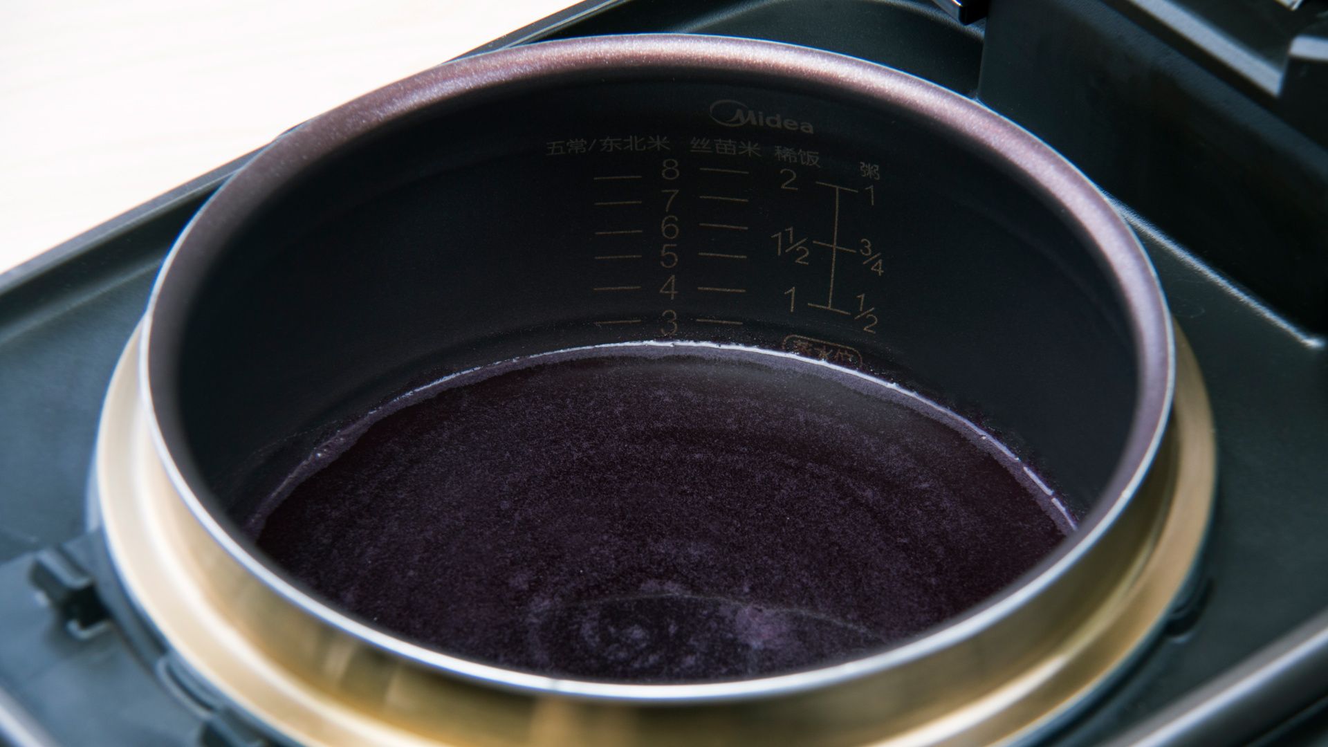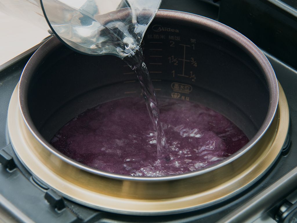 用黑米熬制的米糊软糯适口,营养丰富,早餐必备。