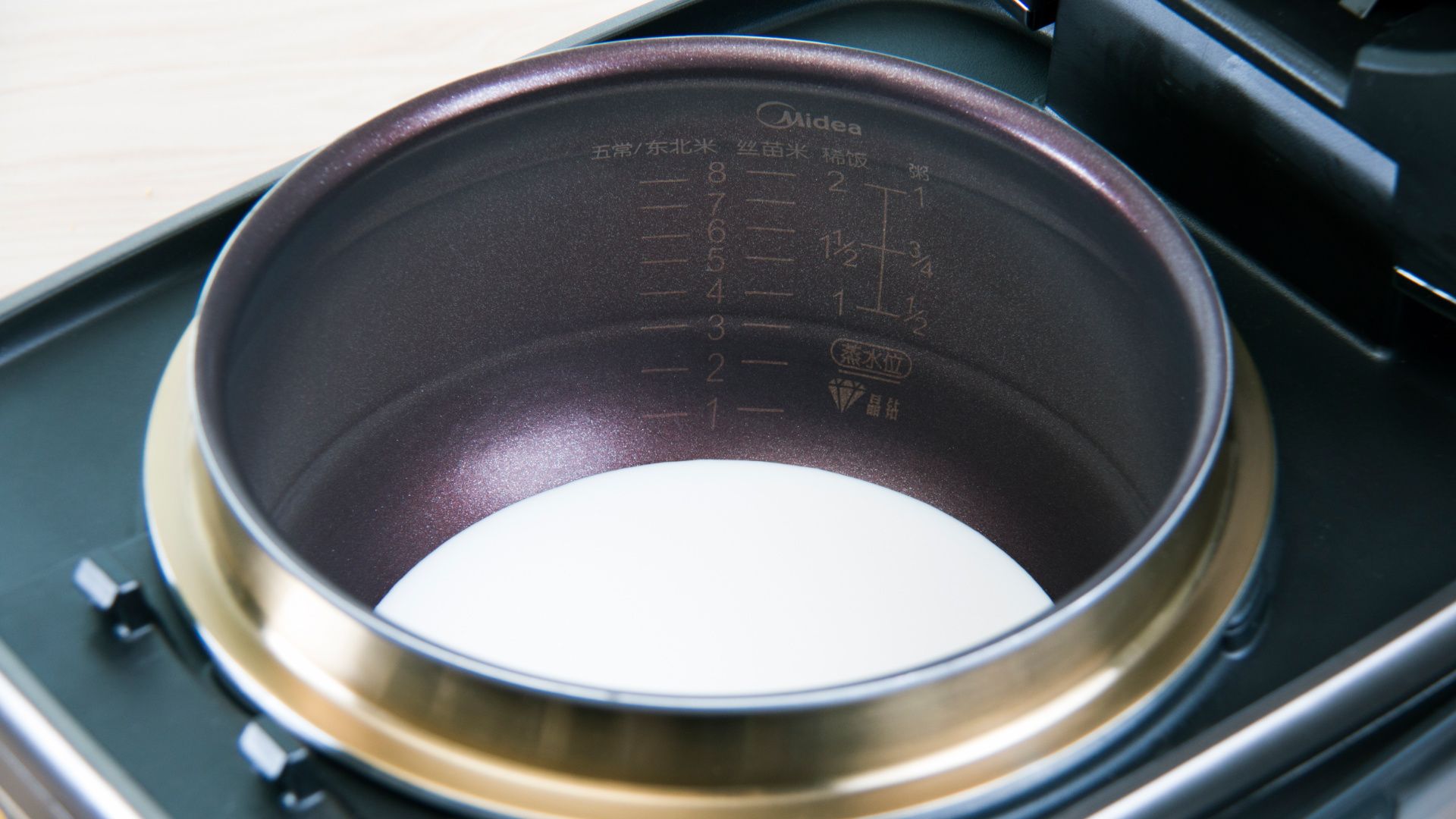 放入饭煲,盒盖按煮饭键。5分钟后烹饪结束倒入奶瓶即可。