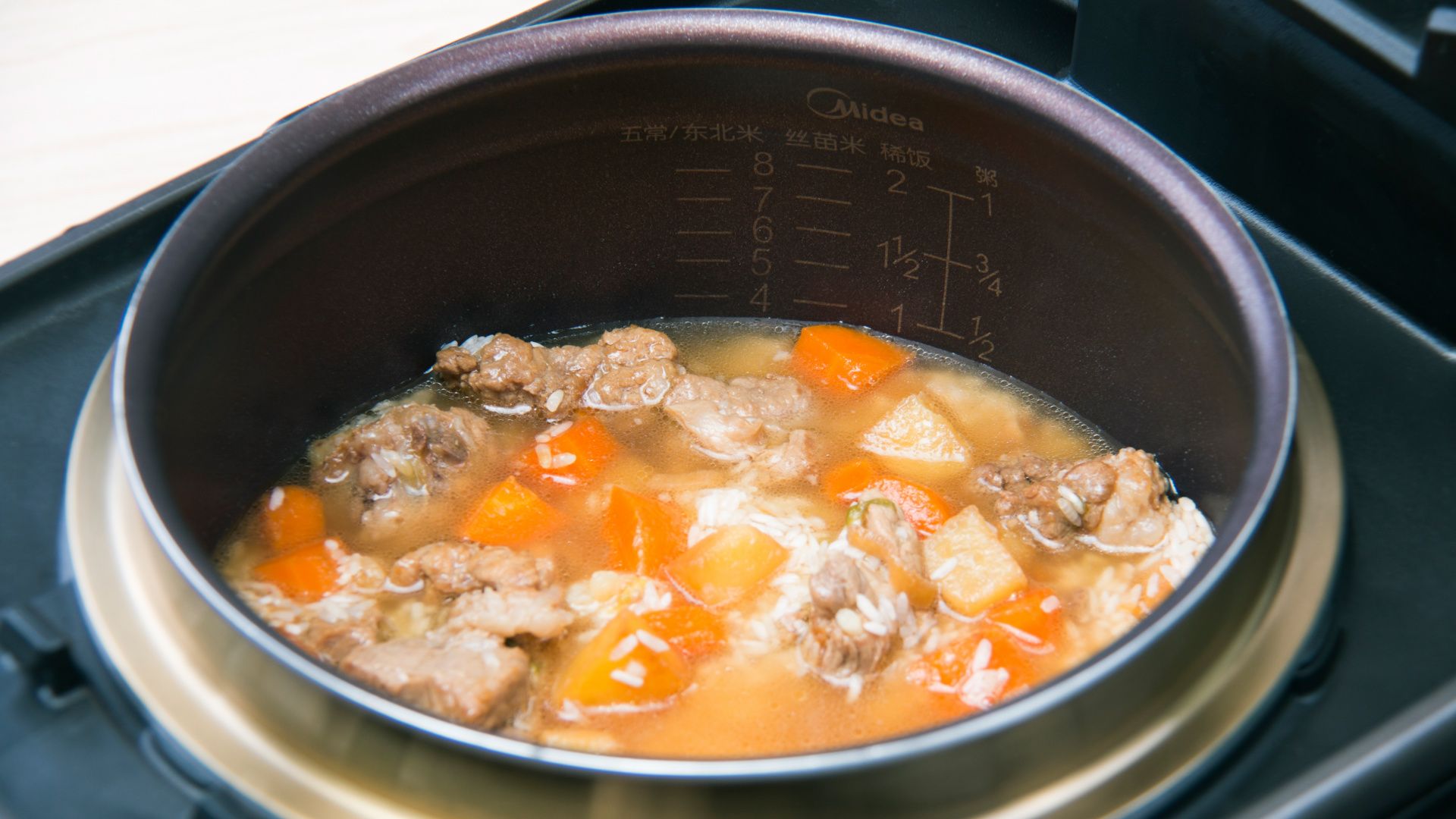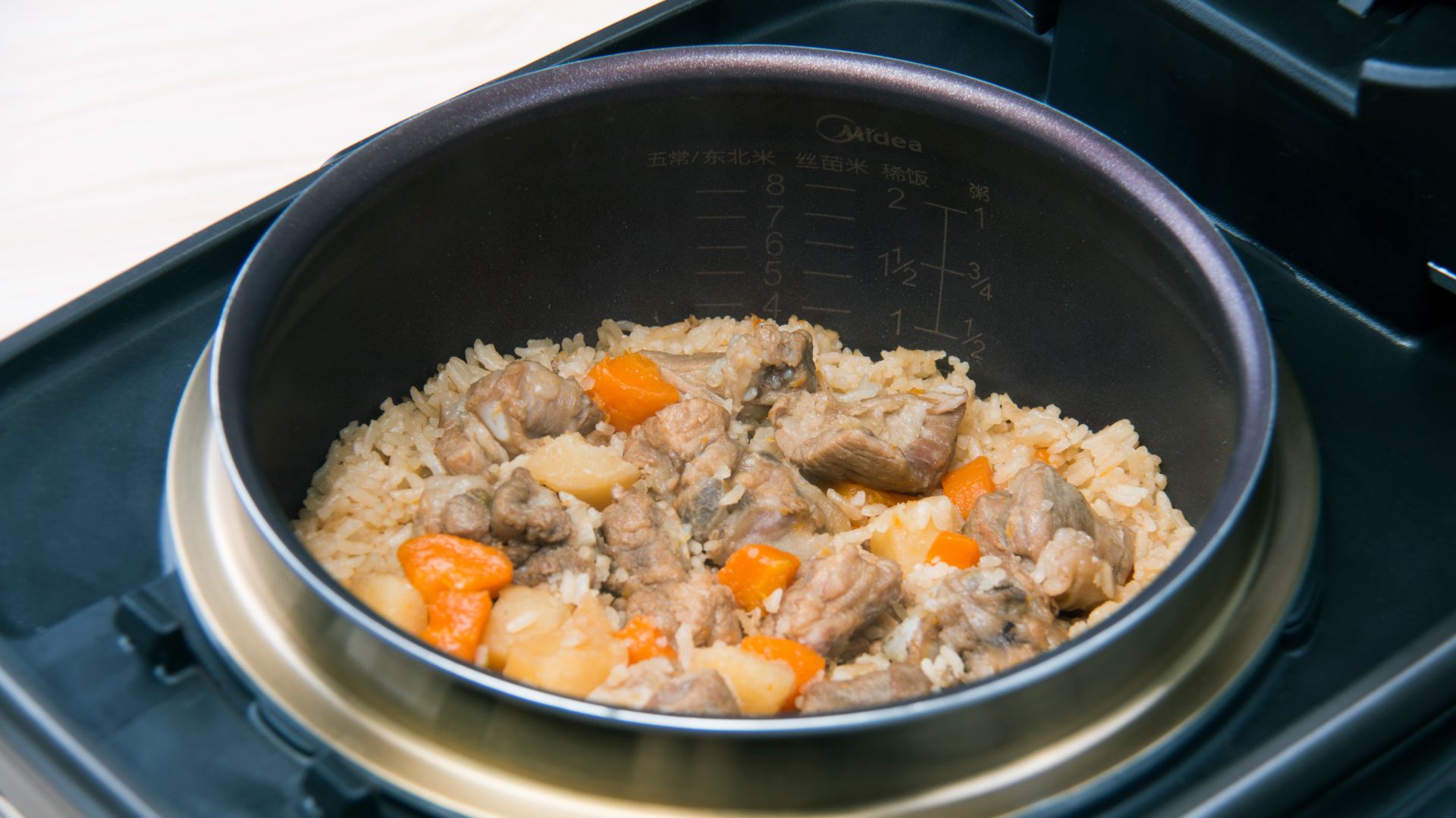 1、煮饭的水份按平常做饭时的份量即可。也可以加入一些其它的自己喜欢的食材;