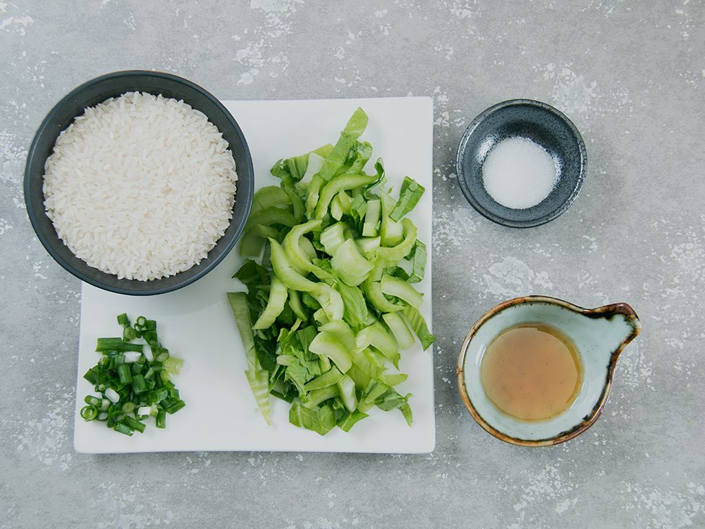 准备好食材,青菜洗净、葱切碎。