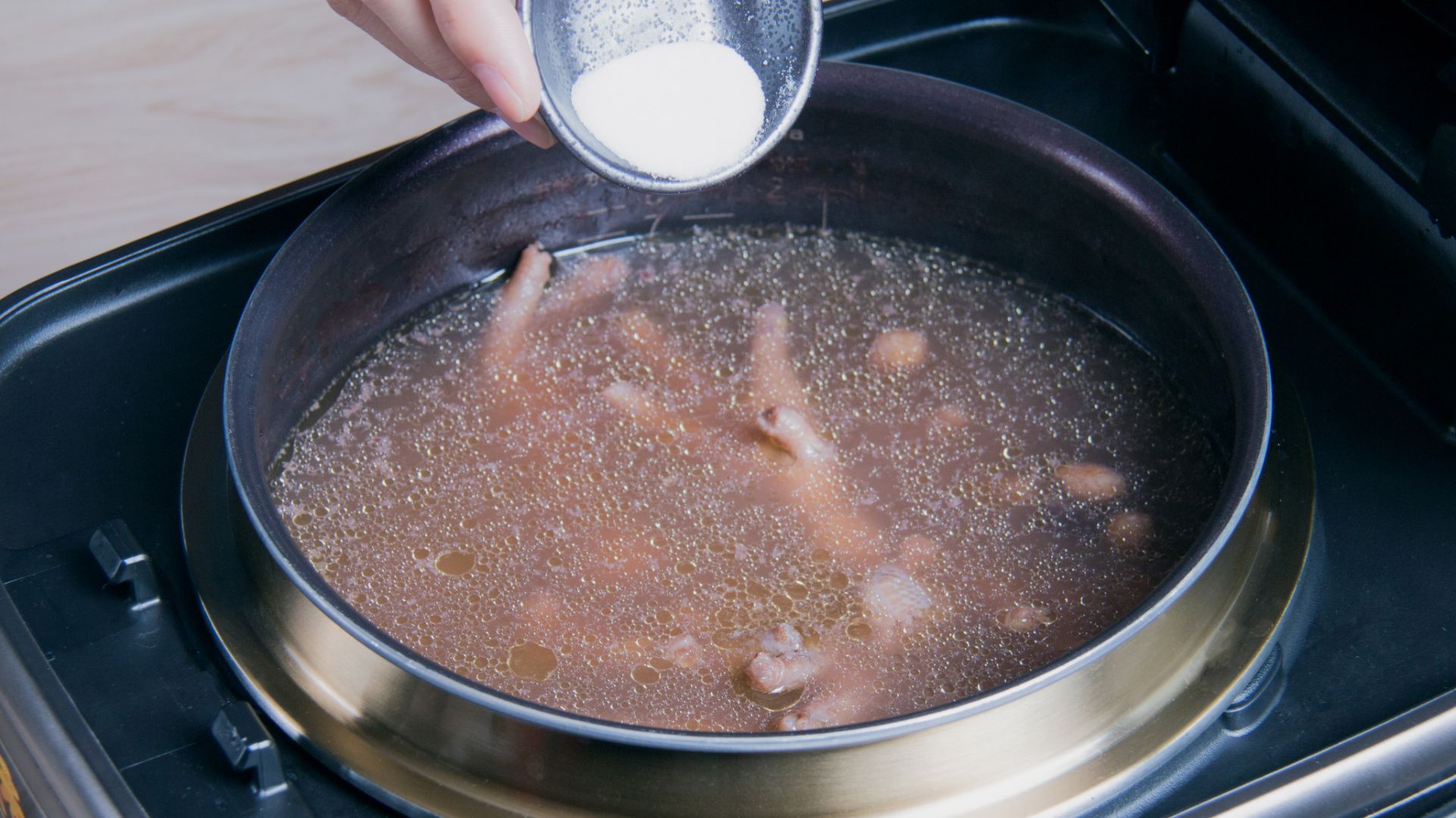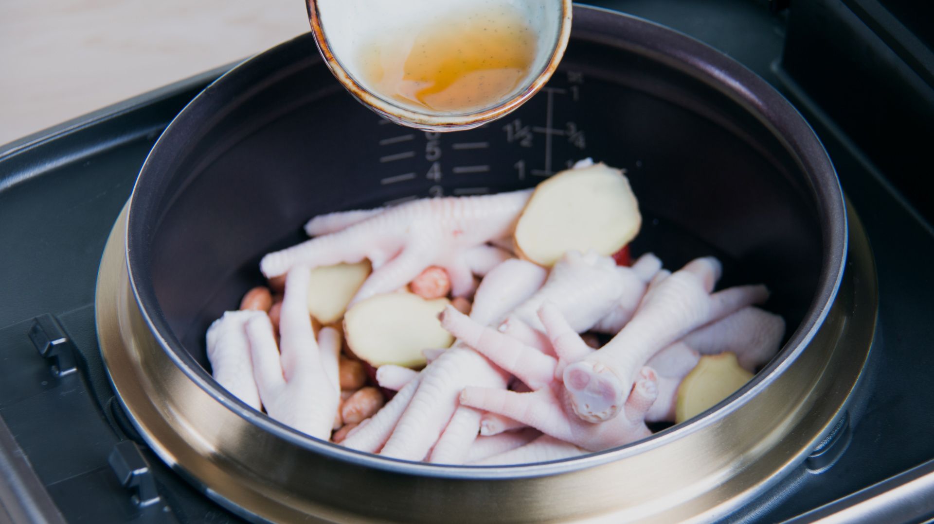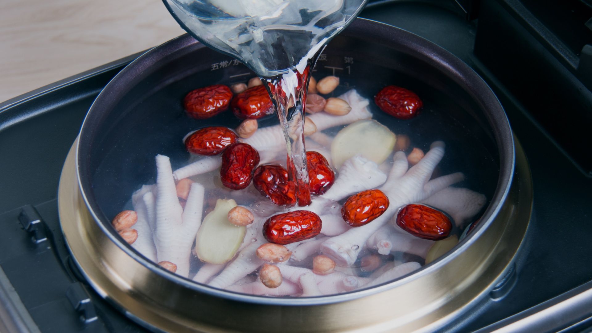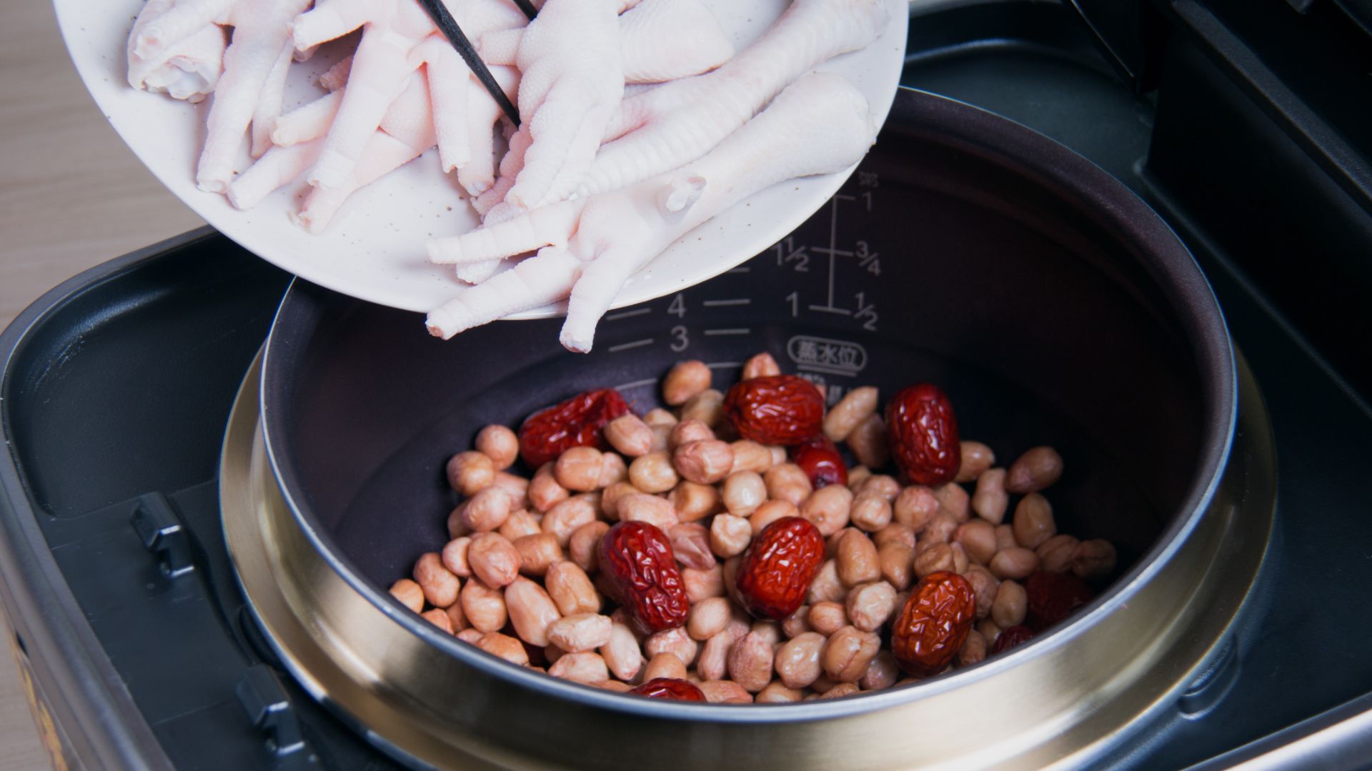 把主料食材(鸡爪、花生、红枣)全部放入内锅。