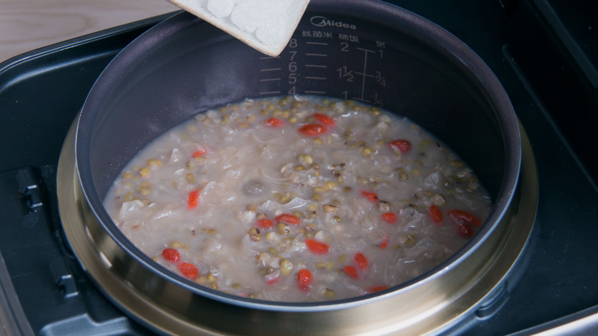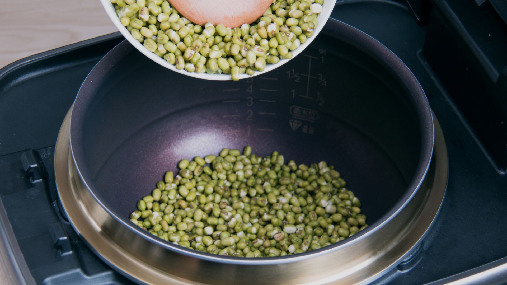 注入清水至煮粥1刻度水位。中火烧开转小火