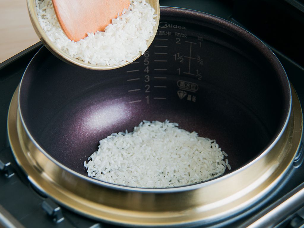 把大米75克、冬瓜200克一同倒入内锅。