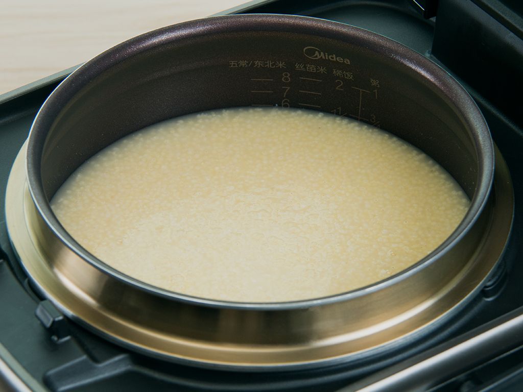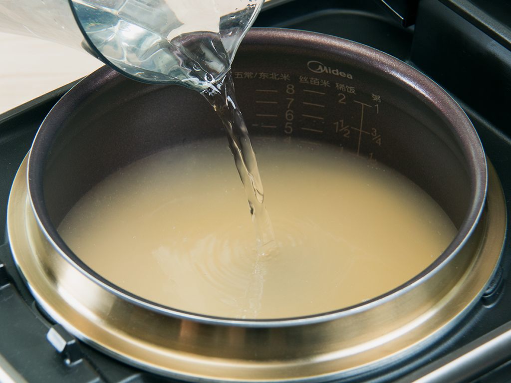 加水约1000毫升,最多不超过粥0.5刻度水位,合盖开始烹饪。