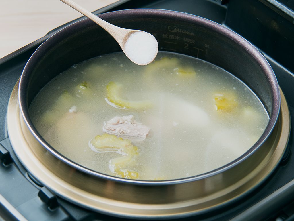 淮山味美、营养丰富,苦瓜清暑清热、明目、解毒,配上排骨同煮,汤醇香而不腻。可根据个人口味,进行调料增减。