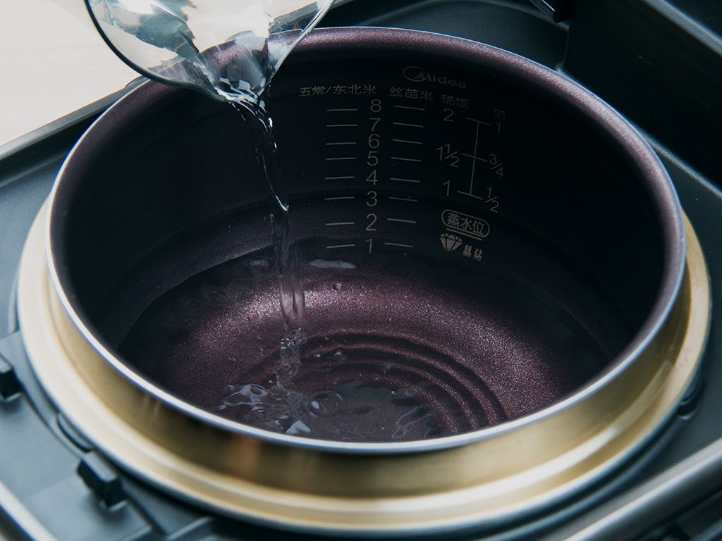饭煲内锅放清水至煮饭1刻度水位(约370毫升)。