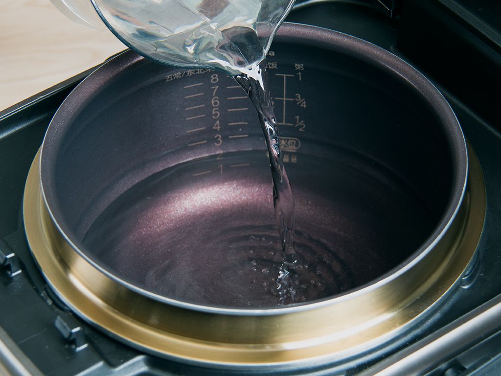 饭煲内锅放清水至煮饭1刻度水位(约370毫升)。