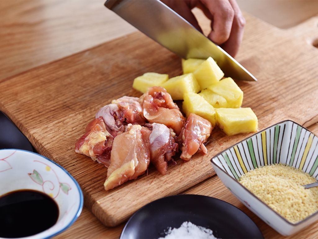 菠萝鸡是一道广东省的汉族传统名菜,属于粤菜系。鸡肉中融入了菠萝的香甜,口感丰富,尤其适宜青少年食用。可根据个人口味,进行调料增减。