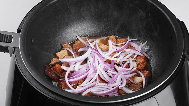 1、放入洋葱50克、食盐3小勺。 2、合盖收汁到浓稠即可出锅。