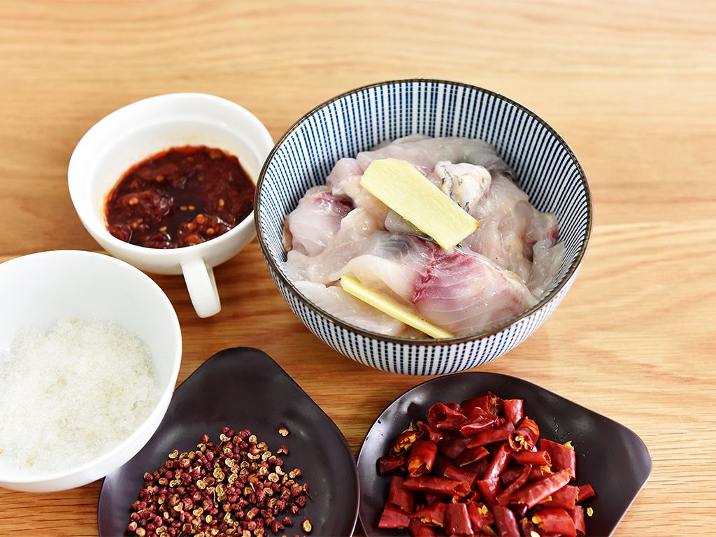 最后在锅中掺入混合油,待油锅升至5-7成熟时,先后加入辣椒段、花椒,待辣椒段成红褐色,辣香香气浓郁时,连同滚油淋于鱼片上即可